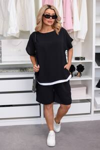 Блузка вільного крою, з невеличкими розрізами по боках. Шорти на еластичній резинці, з кишенями у бокових швах.