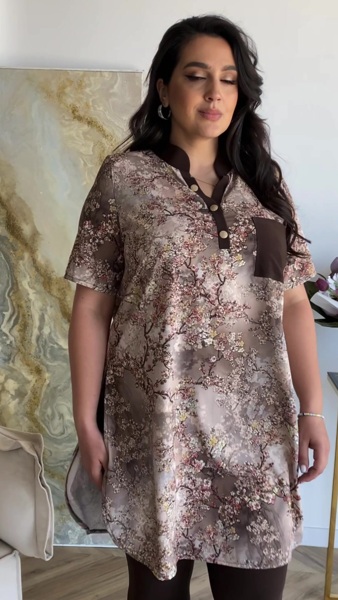 Туніка сорочкового крою, низ фігурний, до грудей планка з гудзиками, рукав короткий.