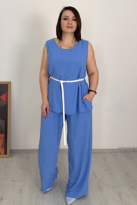 Майка без рукавів, на широких брителях. Брюки вільні палаццо, пояс на резинці, посадка висока. Костюм чудово поєднується з джинсовкою "Донна" та сорочкою "Каталонія".