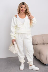 Біла майка з широкими лямками та округлою горловиною забезпечує зручність. Штани вільні, внизу на резинці. З боків розташовані кишені. Доповніть образ спортивним взуттям.