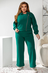 Стильний костюм із тринитки на флісі – поєднання комфорту та сучасного дизайну. Кофта із оригінальною асиметричною блискавкою, що додає образу динамічності та виразності. М’яка тканина приємна до тіла й добре тримає форму, забезпечуючи тепло навіть у прохолодну погоду.