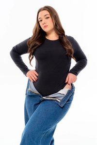Базове боді з довгим рукавом із м’якого бавовняного трикотажу стрейч-кулір.