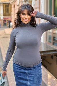 Базовий гольф на довгий рукав з подвійним горлом чудово доповнить костюм, джинси або штани.