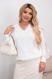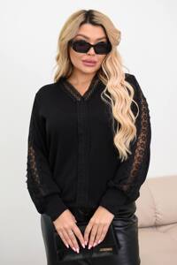 Верх виробу прикрашений неймовірно ніжним та красивим мереживом, який придасть Вам жіночності. На рукавах також вшите мереживо - дуже стильно виглядає в поєднанні. Низ кофти йде на манжеті, який також повторюється і на рукавах.