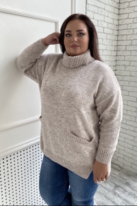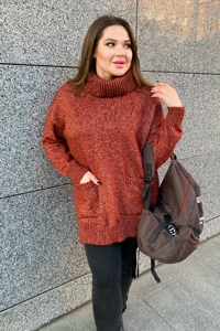 Теплий светр-туніка з високою горловиною, дуже затишний завдяки своєму складу тканини.