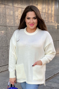 Теплий светр-туніка з округлою горловиною бейкою, дуже затишний завдяки своєму складу тканини.