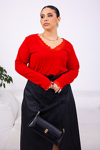 Модель вирізняється глибоким фігурним декольте, яке створює привабливий акцент на зоні шиї та ключиць. Вузькі довгі рукави візуально видовжують руки, підсилюючи жіночність посадки. Завдяки лаконічному дизайну та виразній текстурі матеріалу, цей лонгслів виглядає дорого й сучасно.