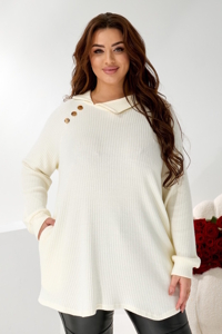 Оригінальний комір із декоративними гудзиками додає шарму та робить образ більш елегантним. Деталі: зручні кишені з боків, рукави з манжетами, легка асиметрія низу.