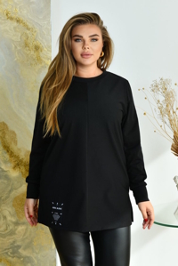 Туніка прямого силуету, на фігурі має бути вільною, така модель. Рукав на манжеті. Виріз горловини круглий. Туніка декорована стильною нашивкою. З боків невеликі розрізи. Кишень, застібок немає.