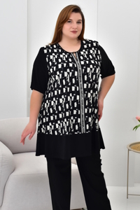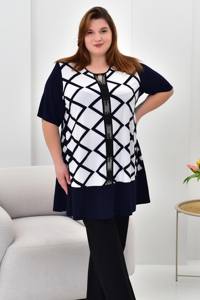 Форма цієї туніки вражає витонченість, а використана тканина, крім того, не тільки забезпечує комфорт, але і виокремлює ваш вишуканий смак. У цьому вбранні особливий акцент робить красивий абстрактний принт, який додає унікальності та виразності вашому стилю. Короткі рукава надають туніці стильний вигляд.