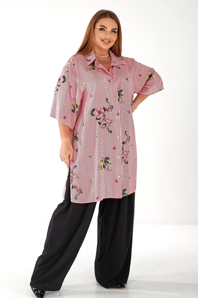 Сорочку можна носити застібнутою, так і у вигляді накидки під низ одягнути майку. До комплекту пропонуємо літні штани з штапелю "Емануела".