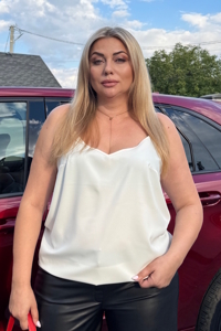 Майка в білизняному стилі з глибоким декольте, чудово поєднується з костюмами, жакетами та сорочками. Довжина дозволяє носити навипуск або заправляти в спідницю та брюки.