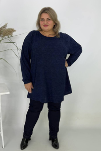 Затишна елегантна туніка, зшита з м'якої машинної в'язки «меланж», доповненої блискучою ниткою. Тканина має неоднорідний колір, приємна до тіла та створює делікатний сяючий ефект. Туніка має вільний крій (А-силует), що забезпечує комфортну посадку та м'яко приховує недоліки фігури. Округлий виріз горловини.