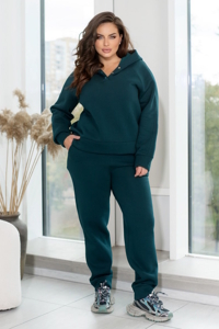 Довгі рукави з манжетами гарантують комфортну посадку та зберігають тепло. Штани з високою посадкою на резинці чудово підкреслюють талію, а манжети внизу забезпечують зручність та стиль. Модель також оснащена практичними боковими кишенями, які додають функціональності. Ідеальний варіант для прохолодної погоди та активного відпочинку.