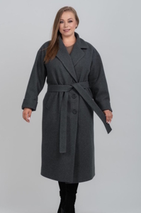 Жіноче двобортне пальто довжини міді у великих розмірах поєднує в собі тепло, комфорт та бездоганний стиль.