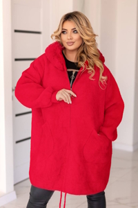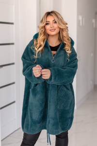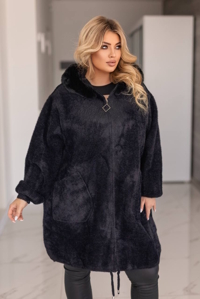 Довжина до коліна, застібка змійка, вшитий капюшон з штучним хутром, що кріпиться на гудзики. Великі накладні кишені, низ виробу з куліскою.