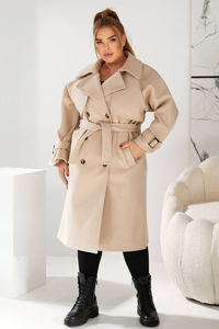 Довгі рукави доповнені декоративними патами з пряжками на манжетах. Спереду розташовані функціональні бічні кишені для зручності. Довжина міді і класичний крій забезпечують, що це пальто залишатиметься актуальним протягом багатьох сезонів.