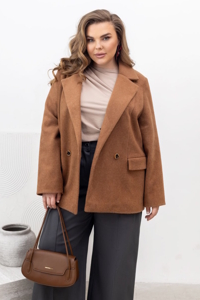 Стильне жіноче пальто прямого, злегка вільного крою. Довжина до середини стегна, класичний відкладний комір із лацканами, що формує елегантний силует і додає структурності.