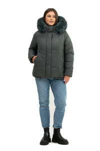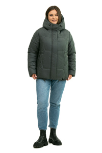 Коротка, стьобана куртка має напівприталений силует і довжину до лінії стегон. Модель оснащена глибоким капюшоном. Верхня частина куртки прошита ромбами, що створює цікавий візерунок, тоді як нижня – горизонтальними секціями. Таке поєднання візерунків робить дизайн більш динамічним.