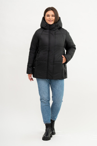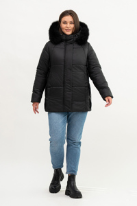 Тепла жіноча зимова куртка. Вона виконана прямому крої та простроченими горизонтальними і вертикальними лініями, що створюють квадратичний візерунок. Модель має об’ємний капюшон, оздоблений густим хутром, яке додає образу затишку й стильності.
