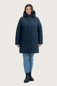 Вся поверхня виробу прошита ромбами різного розміру, що створює цікаву та фактурну поверхню. З боків розташовані похилі кишені, що також прошиті ромбами. Рукави прямі, які щільно прилягають до руки, захищаючи від холоду. Ця куртка – чудовий варіант для холодної погоди, оскільки вона поєднує в собі стиль та функціональність.
