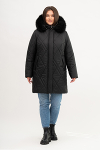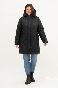 Вся поверхня виробу прошита ромбами різного розміру, що створює цікаву та фактурну поверхню. З боків розташовані похилі кишені, що також прошиті ромбами. Рукави прямі, які щільно прилягають до руки, захищаючи від холоду. Ця куртка – чудовий варіант для холодної погоди, оскільки вона поєднує в собі стиль та функціональність.