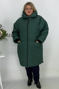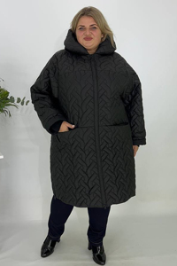 Куртка має вільний, прямий крій та комфортну довжину міді. Високий комір-стійка та глибокий капюшон надійно захищають від вітру. Застібається на центральну блискавку. Спереду розташовані глибокі та зручні прорізні кишені. Цей виріб – ідеальний вибір для морозної погоди, що поєднує стильний дизайн, комфорт та легкість завдяки інноваційному наповнювачу.