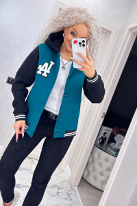 Жіноча куртка-бомбер з контрастними рукавами та брендованою нашивкою. Стильний виріб вільного крою, виконаний з преміального турецького матеріалу зі зручними місткими кишенями.