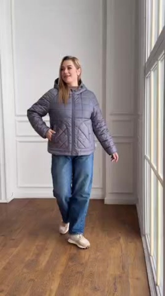 Стьобана куртка має продуманий крій із закругленим низом, що надає силуету м’якості та робить модель універсальною для поєднання з джинсами, брюками чи сукнями. Спинка виконана з дещо подовженою довжиною, завдяки чому модель виглядає більш елегантно та додатково захищає від прохолоди.