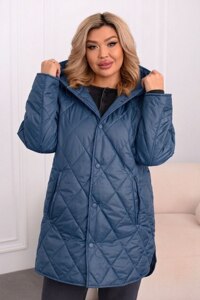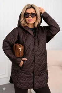 Куртка подовженого вільного крою, виконана у стьобаному дизайні з ромбоподібною прострочкою. Модель має зручний капюшон з контрастною внутрішньою підкладкою. Застібається на кнопки по всій довжині. З боків — практичні кишені для комфорту у повсякденному носінні.