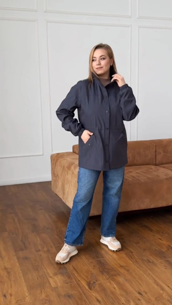 Ця демісезонна жіноча вітрівка для пишних форм забезпечує комфорт, гарну посадку, чудово поєднується з джинсами, брюками.