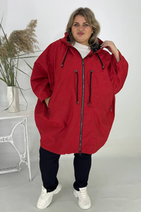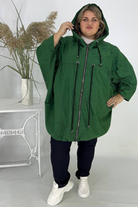 Затишна елегантна вітрівка-куртка, зшита з плащової тканини дуже гарної якості. Тканина водонепроникна та вітронепроникна, що забезпечує надійний захист у негоду. Модель має вільний, об'ємний крій (пончо/оверсайз), що забезпечує комфортну посадку та м'яко приховує недоліки фігури. Куртка оснащена глибоким капюшоном.