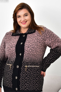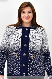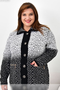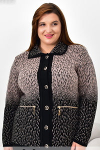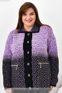 Кофта на ґудзиках із відкладним коміром. Модель виконана з приємної тканини з контрастним градієнтним візерунком. Спереду декоративні кишені на блискавках. Зручний крій забезпечує комфорт і гарну посадку.