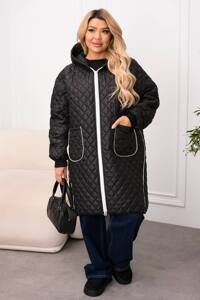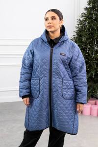 Прямий покрій по типу сендвіч, тобто утеплювач вшитий в два шари плащівки, вшитий капюшон, накладні кишені.