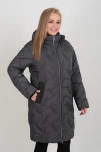 Зимове пальто у великих розмірах прямого силуету, яка виділяється дизайнерською стібкою плащової тканини.