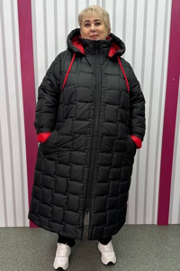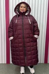 Зимове довге пальто, виконане з стьобаної плащівки.